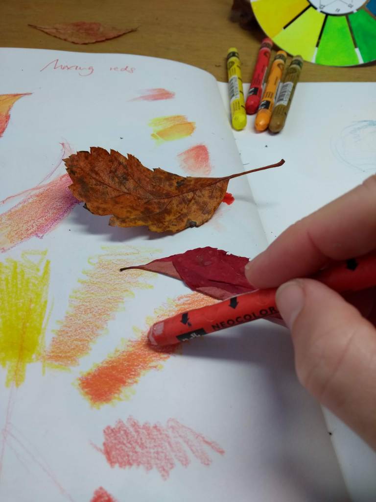 This idea might horrify you though. If you’ve been drawing the same things for years and are feeling stale, try looking eleswhere in your home for objects you haven’t spent time looking at. The veg drawer in the fridge is a good source of change (and often decay!) – there are often things in there or the fruit bowl in various states of freshness, and perhaps it changes by season and even variety. Apples will certainly change variety through the winter, with russets in autum, golden yellow matt skin, through to deep red flecked ones which are appearing now. You can cut and slice your fruit and vegetabels in different ways to create a new view. Below: Pak choi, drawing in graphite, sliced in half and observed in coloured pencil, then printed. The remains went in the stir-fry.